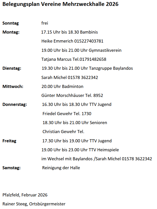 Belegungsplan der Mehrzweckhalle